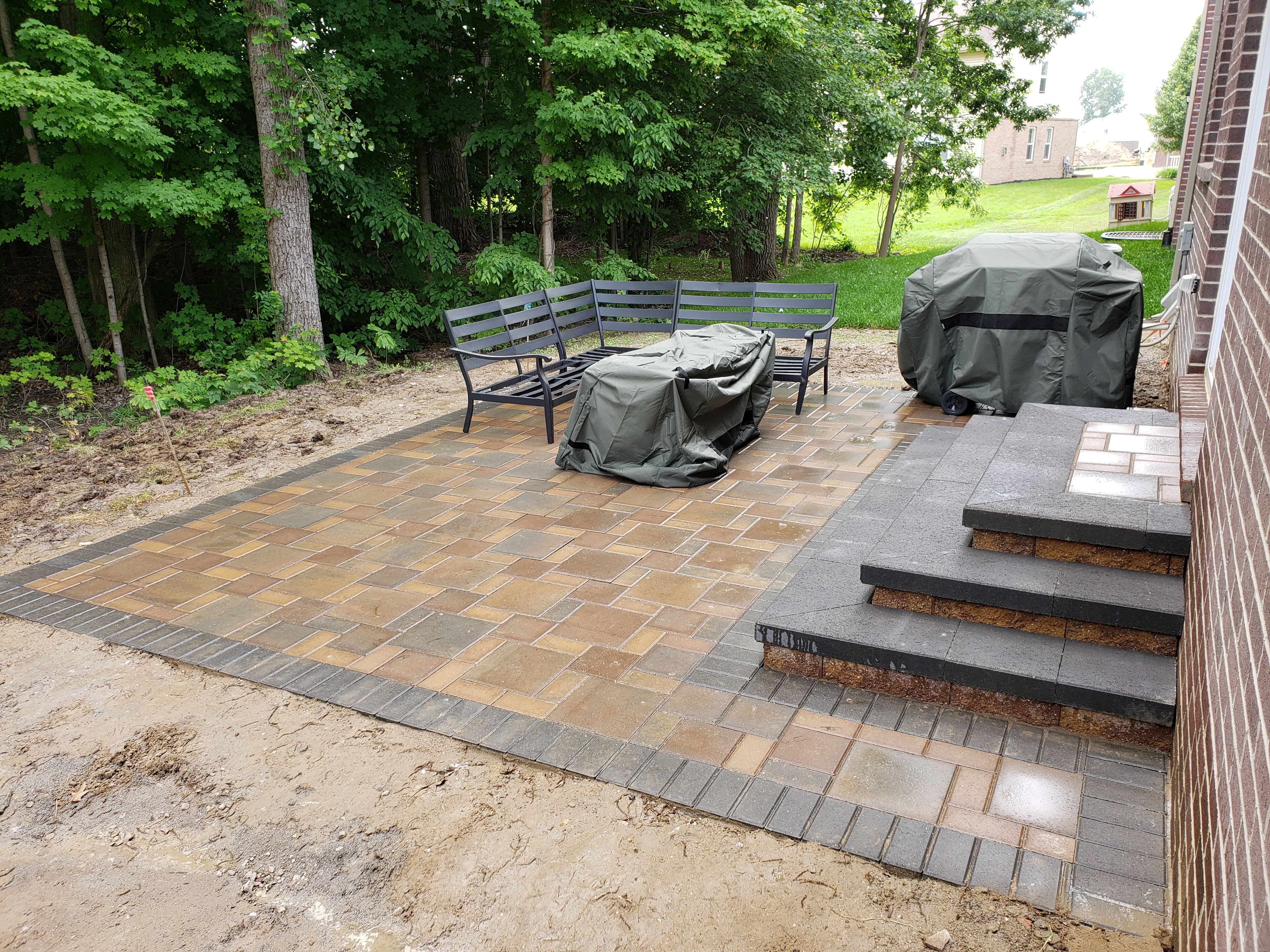 For this project we installed a simple, but functional, brick paver patio in Belleville, MI. The home was a newer build and our clients only had grass in their backyard when we showed up. Because their yard is a bit smaller in size and also had a bit of a slope, they decided they wanted a brick patio large enough to fit a dining table and grill. So we agreed on this layout and it turned out beautiful and functional. Landscape pavers are an excellent choice for backyard patios. They can also be used for paving walkways and driveways. We have built many brick paver patios in the Belleville, MI and Ann Arbor, MI area over the years. If you have a brick paving project in mind, please don't hesitate to call Allscapes today!