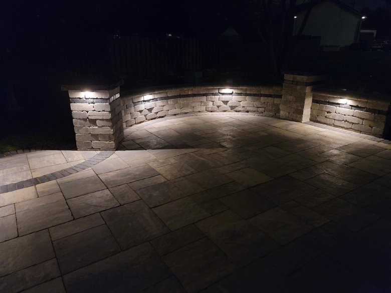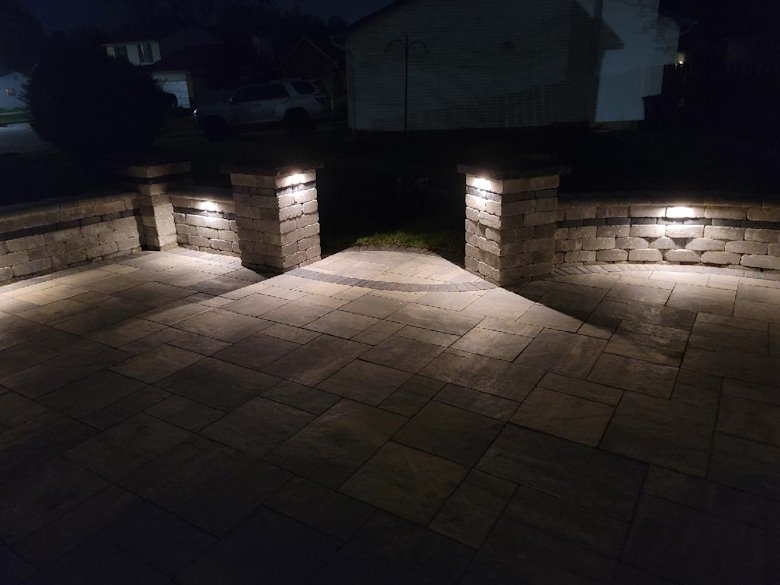 Wouldn't it be great to enjoy an evening on a nice summer night on this brick paver patio that we built in Westland, MI? Call your brick patio pros today to receive a free design and quote for your desired patio project. On this project, our clients did not have any existing deck or patio, only grass. They really wanted to create an area for entertainment for family and friends. So we went to the drawing board and designed this beautiful paver patio. For this patio, we used the Unilock Beacon Hill Smooth pavers in the granite color, along with a Unilock Copthorne accent border in the basalt color. The walls and pillars are made of Unilock Brussels Dimensional block in the Limestone color and we accented the walls and pillars with Unilock Copthorne in the basalt color. We have built many brick paver patios in the Westland, MI area over the years, but this patio project was very unique and design intense.